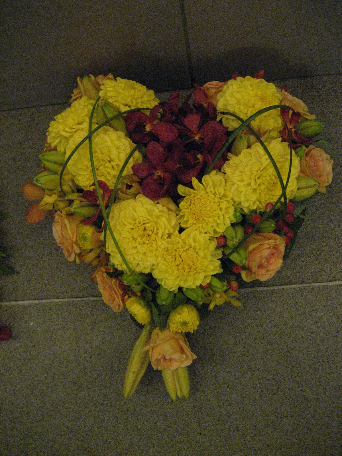 Bref, je ferai donc court comme j'ai deux jours à couvrir (et que je dois toujours retirer ces foutues épines). On a donc fait encore un peu de deuil, et là j'ai bien frôlé la crise d'apoplexie quand on s'est lancé sur le coeur piqué (surtout que j'ai écopé des dalias jaunes et je déteste le jaune, et les dalias). Enfin bon, devant mon scepticisme marqué, la prof a perdu patience, ou eu pitié (suis toujours pas sûre) et elle m'a filé un coup de main.